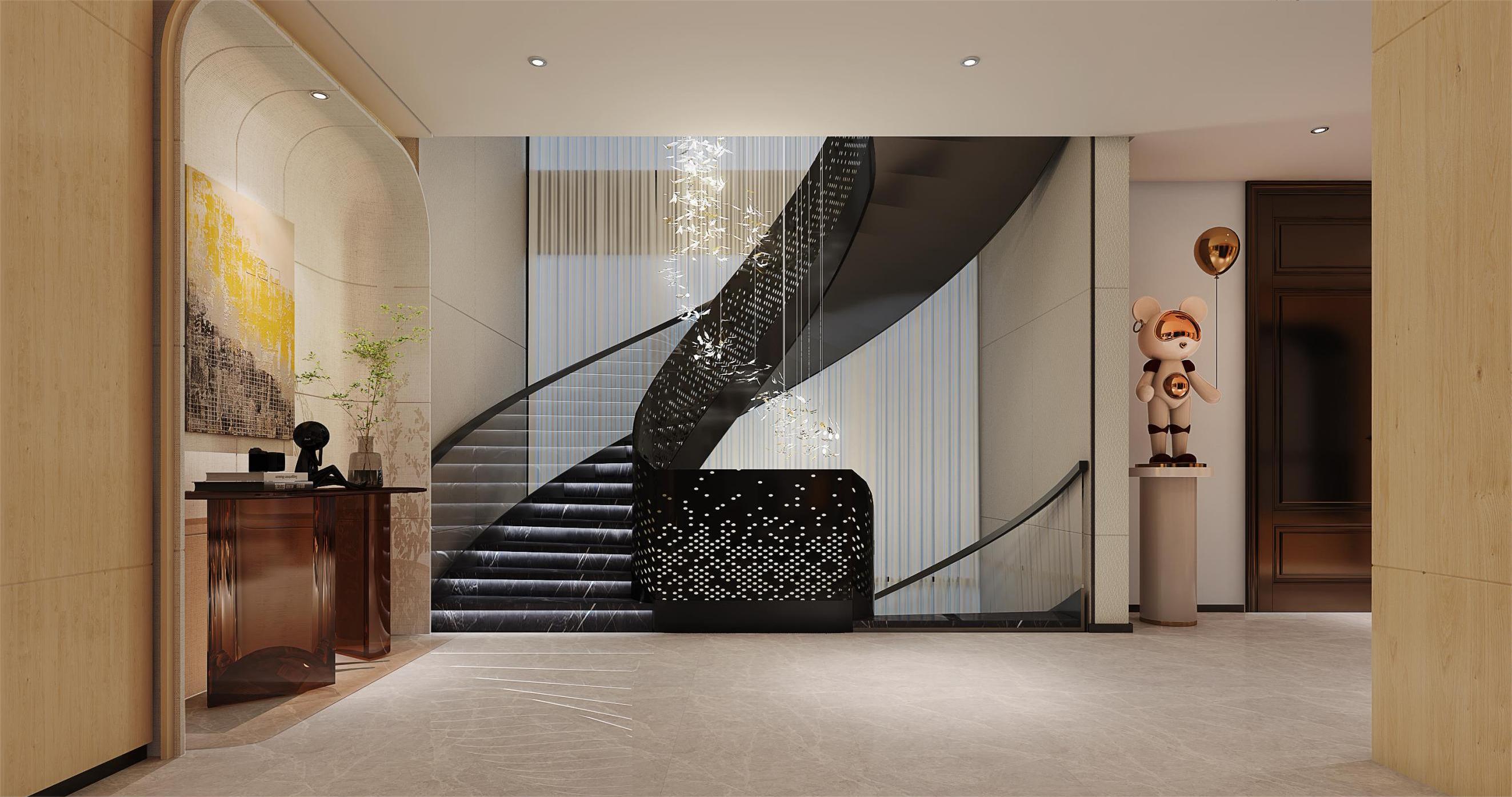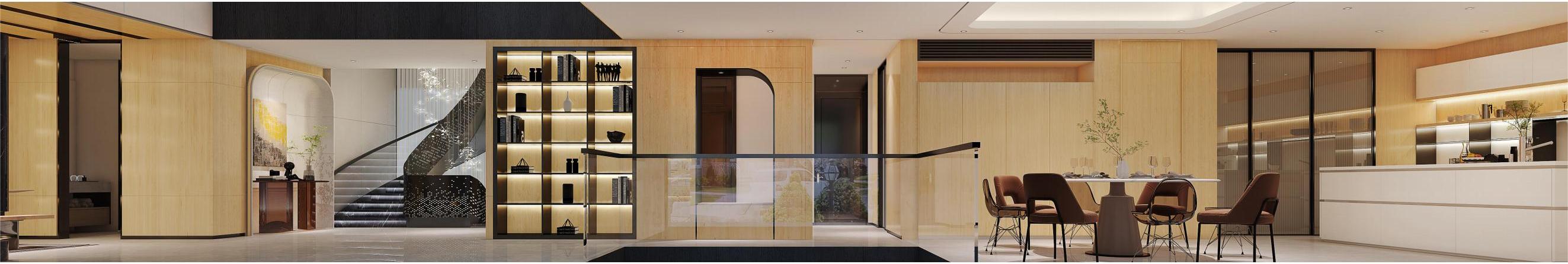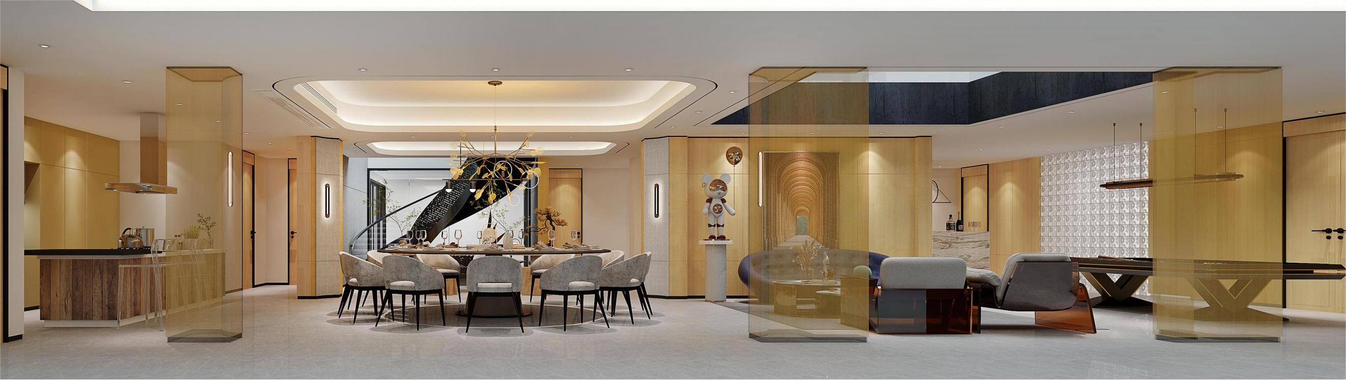 本案为面积1100㎡的独栋别墅空间设计,此空间设计风格为现代简约,空间内运用了简单流畅的线条,前卫又时尚。